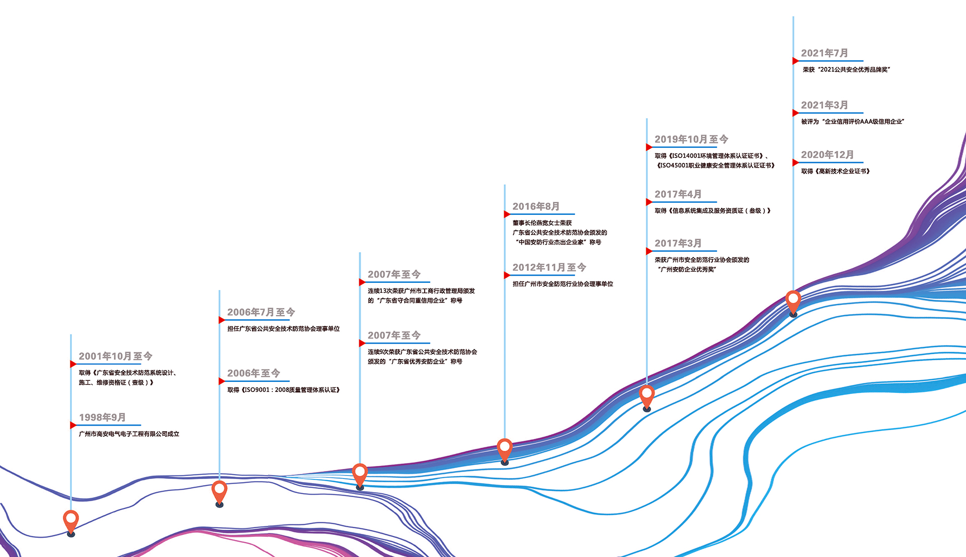 | 2007年至今 ● | 连续9次荣获广东省公共安全技术防范协会颁发的“广东省优秀安防企业”称号 |